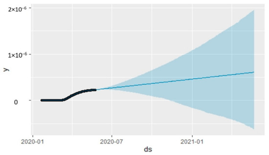 The Prophet algorithm is an open-source tool developed by Facebook’s Data Science team, which is aimed at business forecasting [28]. This algorithm works well with time-series data that have seasonal effects, and it is robust in dealing with missing data [29]. In the Prophet algorithm, the forecast is determined as follows [29]: