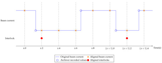 Synchronization of the beam current as an example channel and the interlocks.