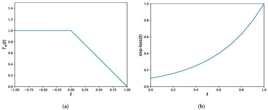 Let denote the linear function defined in Equation (12), and denote the base argument, which can be e or other constants. The exp-loss function is defined by: