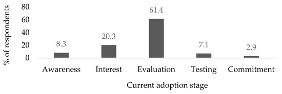 It was important to ascertain the effort being made in the adoption of Cloud BI applications by SMEs and, therefore, the respondents were asked to indicate their current stage of adoption. Figure 3 depicts the distribution of respondents by their stage of Cloud BI adoption.