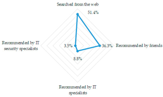 Figure 6 shows that the majority of the respondents (51.4%) searched for evaluation tools from the web and 36.3% used tools recommended by friends. Very few respondents received assistance from IT and security specialists. These results show that very few of the SMEs relied on IT and security specialists when selecting various online and cloud services.