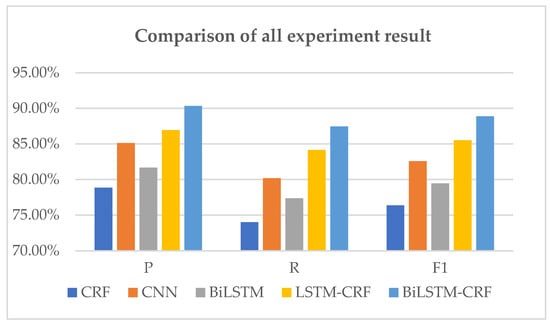 It can be clearly seen from the model comparison histogram in Figure 5 that the results of BiLSTM-CRF are better than other models.
