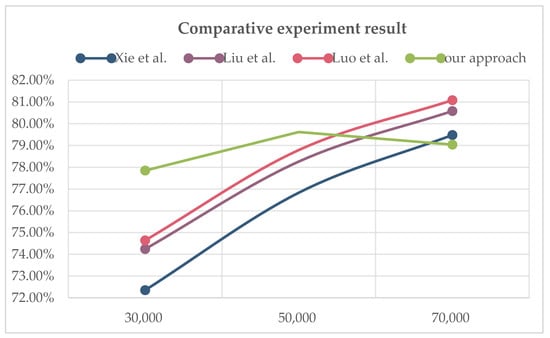 Based on the above analysis, this paper considers the impact of the size of the knowledge vocabulary on the answer generation. Therefore, three vocabulary sizes are used for experiments. In the comparison model, the same triples corresponding to the knowledge vocabulary are used. As shown in Figure 6, the accuracy of the extractive model is improving with the increase of knowledge base data. However, the main reason that the accuracy of the method proposed in this paper decreases after the word expression reaches a certain level is that after the scale of the vocabulary expands, more useless nouns increase, which will also lead to inaccurate answers.
