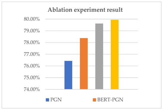 According to Table 8, the accuracy of using only PGN is 3.19% lower than that of using the BERT pre-trained language model to splice word frequency semantic features, and our method is 1.25% higher than the method using no word frequency semantic features. Experiments show that our method can further improve the effect of the model. The word vectors representation obtained by the pre-trained language model and word frequency semantic features can more accurately understand the semantic information of the question, and then improve the accuracy of the generated answer. Then our method is compared with a further improved method using TF-IDF. It can be found that the accuracy rate was increased by 0.32% compared to the previous one. Combining the pre-trained language model with TF-IDF, our method can express the importance of the entities of the question in the dataset more clearly.
