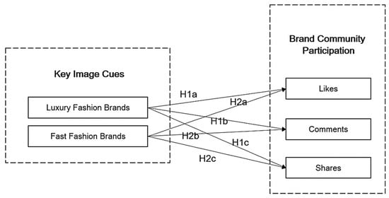 Familiarity with brands is another key factor influencing public participation. Therefore, social media information (cognition) and engagement with the information (behavior) can strengthen public interest [81,82]. Some studies define public participation as a “three-dimensional structure of cognition, emotion and behavior” [83,84]. The proliferation of brand communities [80] has led to a growing number of brand community analyses [34,81,85]. Accounting for market demands and technological developments, this study proposes an association model that is based on fashion brand information and community behavior to evaluate interactions between brand communities and key image cues.