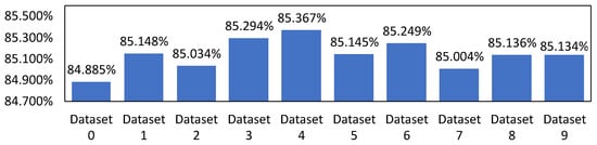 We performed cross-validation on ten new datasets not used to train the MTL model to validate the model’s accuracy in classifying the scheduling algorithm. Figure 8 shows that the model has an accuracy of above in choosing the scheduling algorithm with the best optimization plausible under the computation deadline. On average, it has an average accuracy of , which shows how effective the model is.