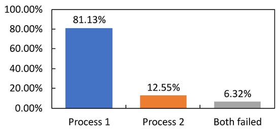Figure 10 shows the relationship between Process 1 and Process 2 analyzed by the Comparator. From the result shown, we know the scheduling framework has an average of using the scheduler from Process 1 for and Process 2 for . In other words, Process 1 was able to meet the computation deadline to create the scheduler for an average of , while in the cases where Process 1 failed to meet the computation deadline, the scheduling framework used the scheduler generated by Process 2 where Process 2 has an average of meeting the computation deadline for an average of .