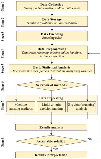 The new framework for unified analysis of educational data consists of eight stages, as follows: