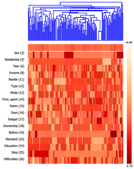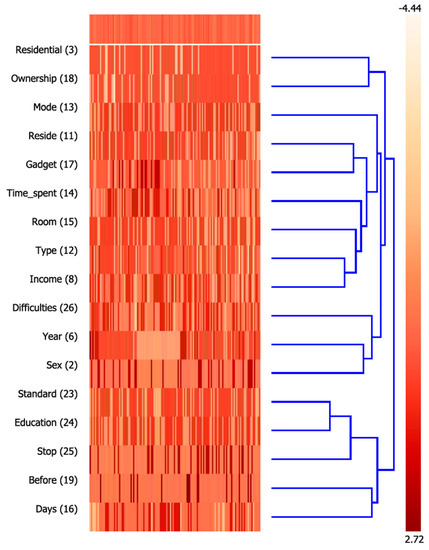 The Mode (13) and Room (15) attributes with differences of 0.025 and 0.022 between the two groups exert the most significant influence over the readiness for distance learning. This showed that the students whose education is technologically secured and who have their own room do better.