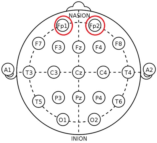- Public Domain. Available online: https://en.wikipedia.org/wiki/10%E2%80%9320_system_(EEG)#/media/File:21_electrodes_of_International_10-20_system_for_EEG.svg (accessed on 10 April 2021).