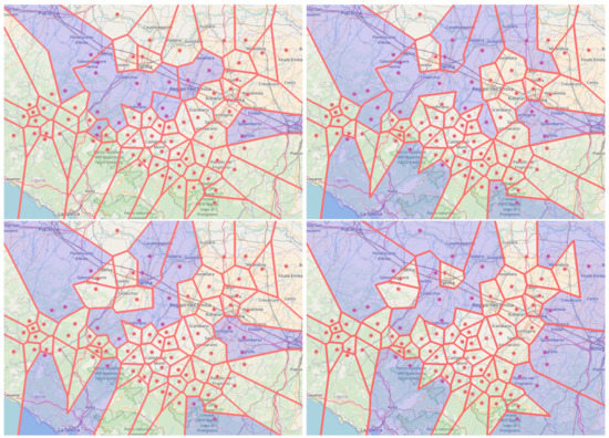 - Okabe, A.; Boots, B.; Sugihara, K.; Chiu, S. Spatial Tessellations—Concepts and Applications of Voronoi Diagrams; Probability and Statistics; John Wiley: Hoboken, NJ, USA, 2000. [Google Scholar]