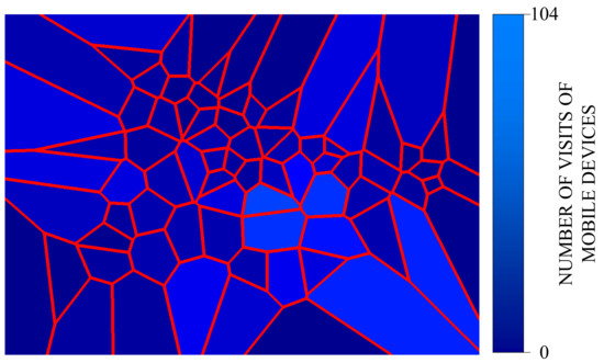 - for each mobile device, retrieve the three stations related to the Voronoi regions in which the mobile device has passed most of its time;