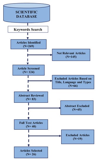 To examine the evidence for ontology-based methods for semantically enhancing QA for a closed domain, this study employed a tree table (Table 1) after rapidly examining 124 articles related to ontology-based approaches located on the Web of Science (WoS), limited by date of publication (2000–2020). The data were collected from the WoS Core Collection, constituted by the Social Sciences Citation Index (SSCI), Science Citation Index Expanded (SCI-EXPANDED), Conference Proceedings Citation Index - Science (CPCI-S), Conference Proceedings Citation Index-Social Science & Humanities (CPCI-SSH), Arts & Humanities Citation Index (A&HCI), and the newly included Emerging Sources Citation Index (ESCI). None of the selected articles afforded us exact data. Therefore, we excluded information deemed irrelevant by adding inclusion and exclusion criteria. In the first phase, we remove 145 irrelevant articles out of 269. In the second phase, we selected articles based on titles, abstracts and keywords, and rejected a further 66 papers. In this phase, we excluded 45 articles because the abstract did not align with the study’s inclusion criteria. In the fourth phase, 19 were excluded for unusable data, and finally 26 were chosen for the literature review, as mentioned in Figure 1. The main categories created to classify the papers reviewed included the metadata of the paper, the problem identified, methods used, findings, future studies, techniques, and evaluation metrics (Table 1).