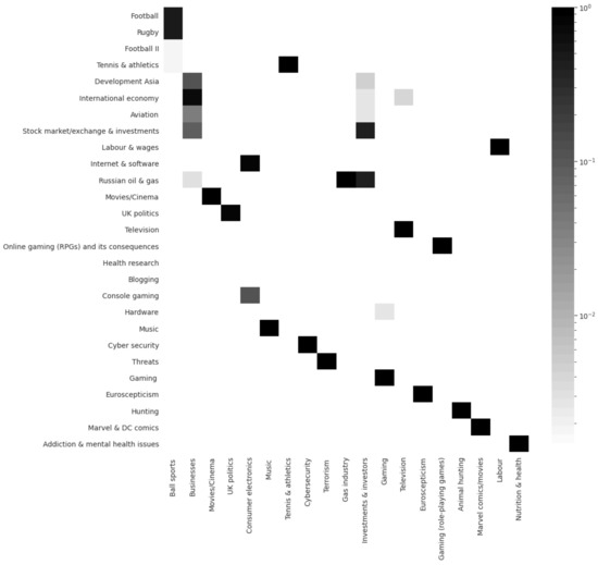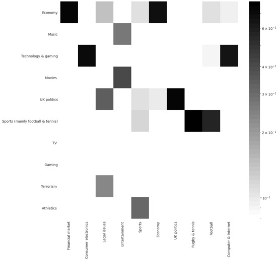- Blei, D.M. Probabilistic topic models. Commun. ACM 2012, 55, 77–84. [Google Scholar] [CrossRef]