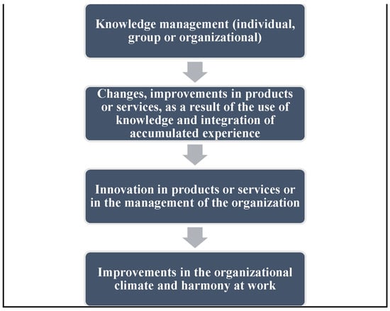 Thanks to knowledge management, it is possible to detonate administrative, market, technological, and organizational innovations [44] that favor the achievement of the organization’s objectives. Innovation and knowledge creation are a virtuous circle, an indissoluble pairing [21]. This can be seen in Figure 1.