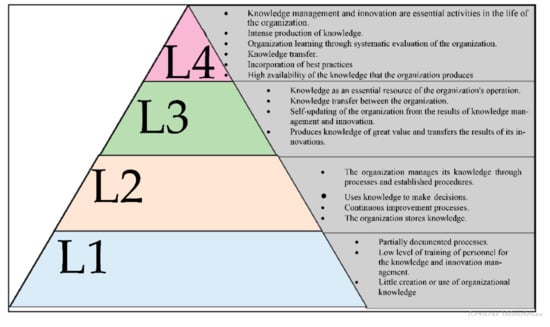 The levels that have been defined for the proposed standard have been derived from previous work carried out in the academic world [72], from the gradual nature that is normally observed in knowledge management and innovation, and from the approach that is commonly observed it is associated in other models, such as the assessments of the levels of the technology readiness level (TRL) and the models of generation or production of knowledge, originally proposed.