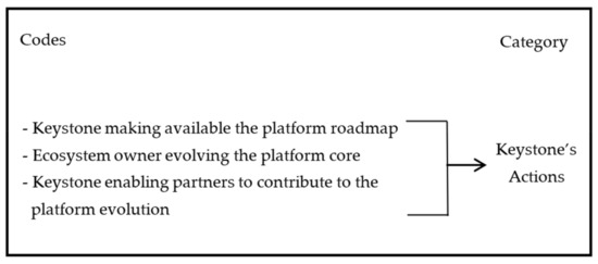 After the constant comparison approach was used, that is, the codes generated in each interview were compared with the codes in the same interview and others. From these comparisons, the codes were grouped into the following categories: keystone’s actions and partners’ actions for switching from a software product to a platform ecosystem, treating the impact on partnership models (see Figure 4). After that, we identified relationships among these categories and the platform quality, as well as the support for partners, as described in Figure 5.