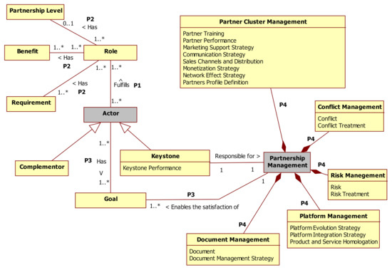 In Step 2, the primary studies were analyzed, and the relations among characteristics of partnership models were defined and represented in the meta-model. These relationships were structured as propositions, as proposed by Sjøberg [45]. These propositions can be accepted or refuted when analyzing the investigated context, so they are empirically traceable and testable.