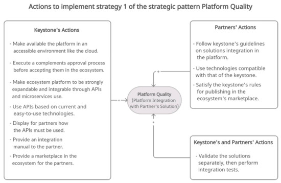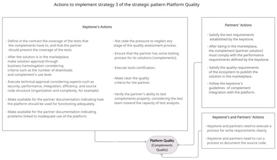 After defining the partnership meta-model, strategic patterns were created. These patterns present strategies to help the keystone migrating from a software product to an ecosystem, treating factors that impact partnership model’s definition (e.g., complements and platform quality). The proposed patterns were obtained from the synthesis of the Multivocal Literature Review. We chose to use patterns because they are widely used in Software Engineering and Business literature to document reusable knowledge [46,47,48,49].