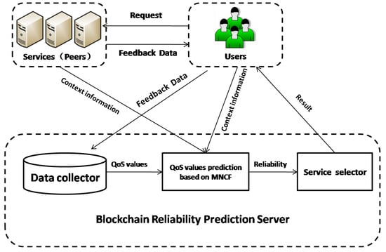 - Reliability Prediction. We herein propose a general framework for predicting the reliability of blockchain peers. By predicting unknown QoS values, we can calculate the reliability of each peer.