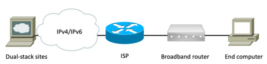 - Aravind, S.; Padmavathi, G. Migration to Ipv6 from IPV4 by dual stack and tunneling techniques. In Proceedings of the 2015 International Conference on Smart Technologies and Management for Computing, Energy and Materials (ICSTM), Avadi, Chennai, India, 6–8 May 2015; pp. 107–111. [Google Scholar]