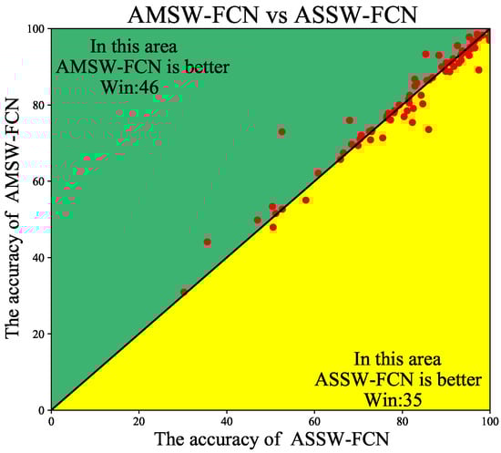 The pairwise comparison between AMSW-FCN and ASSW-FCN.
