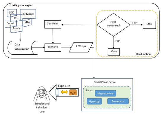 Immersive VR technology works when capable of sensory estrangement with the user from the physical world and replacing the sensory flow with simulation circumstances generated by the computer [30]. Immersive content in the form of graphics, voice, scenarios, emotional involvement, and visual depth have created a second objective in producing immersive feelings, as well as control with visual techniques for acrophobia therapy. Immersive or, in other words, immersion is a word commonly used in the field of virtual environments. This term comes from the moving area in the picture or movie. The word “soak” is used to refer to the act of self-absorption or to dive into another (virtual) world. The definition of immersive in VR AIVE exposure therapy system is: “Immersive is part of effective VR technology to a sense of presence in holonogic cognitive (various tastes of sensations/feelings) VR.”