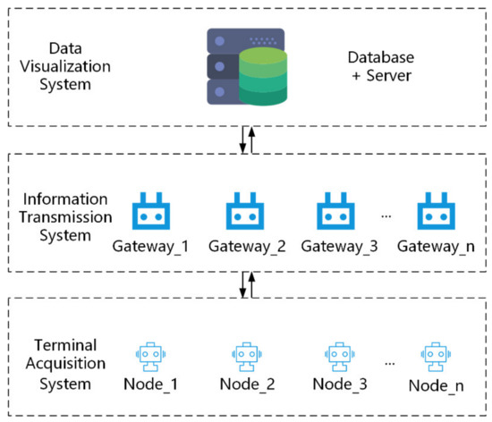Multiple terminal acquisition nodes upload the acquired environmental information to the regional gateway via Bluetooth. After the gateway receives the data, it forwards the data to the server via Wi-Fi. The server processes the data after receiving the data and feeds back information to the corresponding node. Users in the local area network can access the data visualization system through the browser of any smart terminal device.