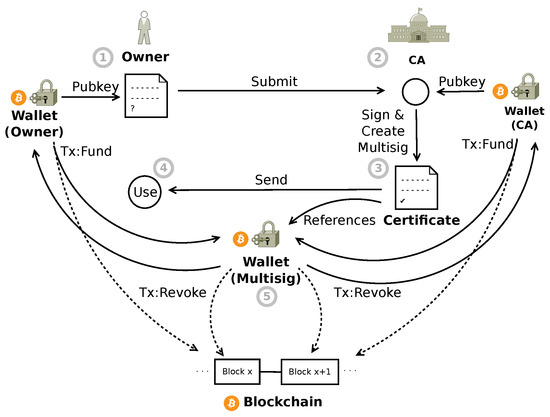 - Garba, A.; Bochem, A.; Leiding, B. BlockVoke–Fast, Blockchain-Based Certificate Revocation for PKIs and the Web of Trust. In International Conference on Information Security; Springer: Berlin/Heidelberg, Germany, 2020; pp. 315–333. [Google Scholar]