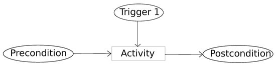 A behavioral interface model identifies behavioral units and defines an interface for each behavioral unit [42]. A behavioral unit is an activity that is performed as part of one of the roles played by an agent described in the goal model. The behavioral interface identifies the triggers, preconditions and postconditions associated with each activity. A trigger is an event or a set of events that trigger the activity. Preconditions are sets of necessary conditions that must be fulfilled for the activity to proceed. Preconditions may be non-existent, indicating spontaneous triggering of the activity. Postconditions are a set of conditions that must be fulfilled to denote the successful proceeding of that activity.