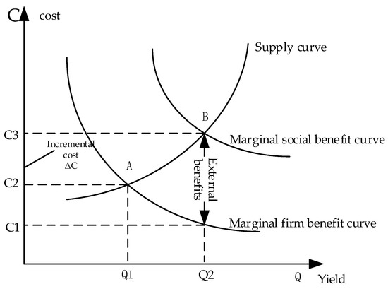 The construction of prefabricated buildings can provide not only direct economic benefits to relevant stakeholders but also has significant advantages in protecting the environment and saving resources. Therefore, it exhibits significant positive externalities, and the social benefits brought by it are recognized. The incoming incremental costs need to be borne by the relevant stakeholders. As the main undertaker, component manufacturers are the main bearers. In the initial stage of prefabricated construction, the marginal corporate benefits are less than the marginal social benefits. From the principles of economics, we know that when the marginal corporate benefit is less than the marginal social benefit, the allocation of social resources cannot reach the Pareto optimum, and the behavior of component vendors hinders the development of prefabricated buildings [14].
