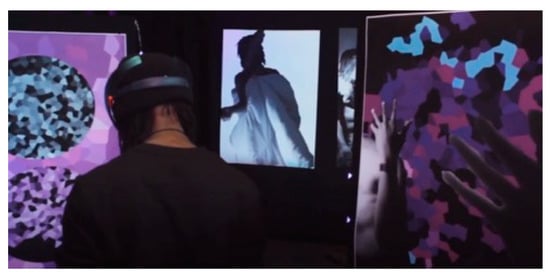 Ref. [16] developed an interactive application for museum visitors using an AR view to create an immersive experience by superimposing generated 3D objects over real-life museum artworks, searching for related works of music, and using the generated 3D model as an audio visualizer. They used music to “make visitors more engaged without interfering with or being separate from their appreciation for traditional art forms”.