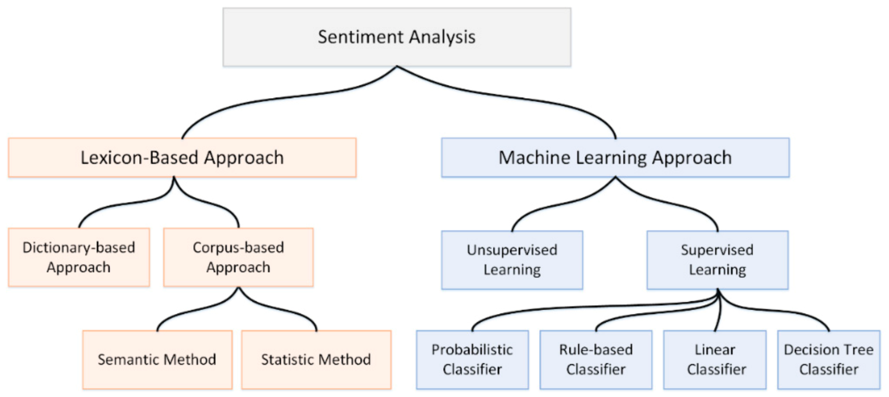 - The lexicon-based method where a given text is parsed to locate certain phrases or words with its main purpose to identify their respective sentiment value or emotion. The approach is to obtain with their given orientations the initial seed set of words and then search online dictionaries such as WordNet etc. The Corpus-based approach effectively provides corpus analytics to evaluate words of sentiment, although it is not as successful as the dictionary-based method. It is useful for finding the domain and context of specific sentiment words against the corpus data. This scheme is beneficial when we seek data in order to determine sentiment words [22,23].