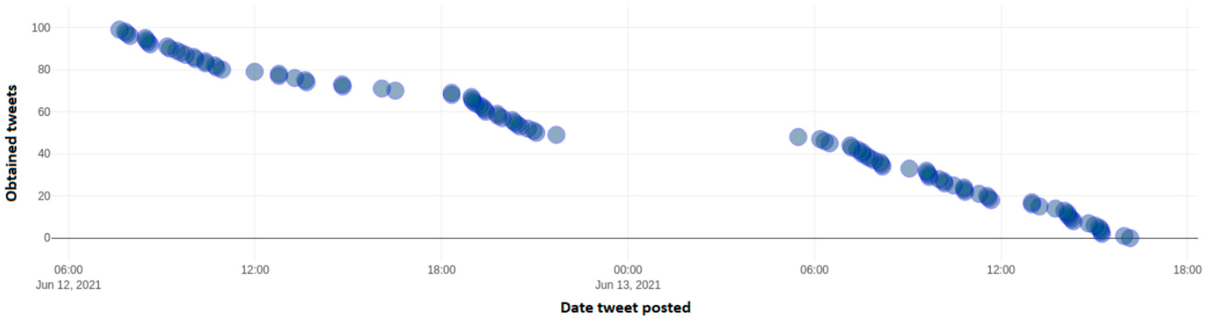 - Chatziadam, P.; Dimitriadis, A.; Gikas, S.; Logothetis, I.; Michalodimitrakis, M.; Neratzoulakis, M.; Papadakis, A.; Kontoulis, V.; Siganos, N.; Theodoropoulos, D.; et al. TwiFly: A Data Analysis Framework for Twitter. Information 2020, 11, 247. [Google Scholar] [CrossRef]