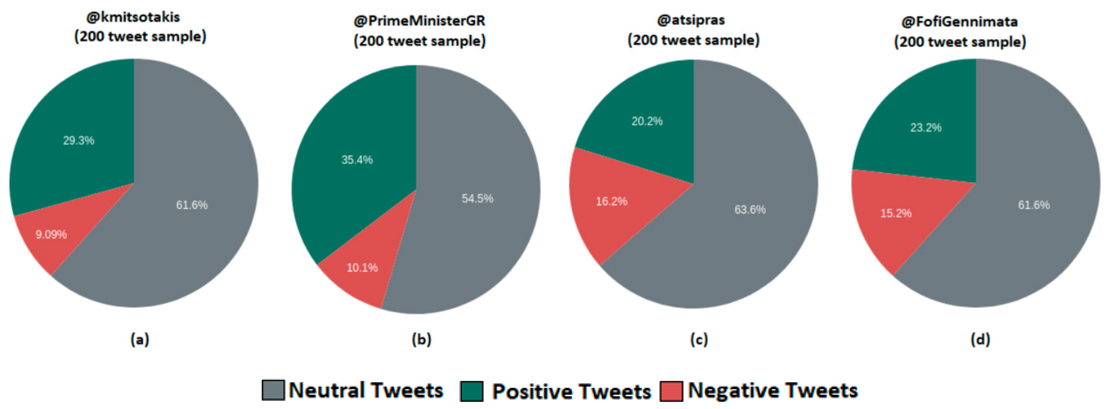 - As a proof of concept, we apply our tool to the three most prominent Greek politicians, i.e., Kyriakos Mitsotakis leader of New Democracy (liberal-right wing) and current Prime Minister of Greece; Alexis Tsipras, leader of SYRIZA party (radical-left wing); and Fofi Gennimata, leader of the political party Movement for Change (center-left wing), and we present the high-value insights identified by the various visuals our tool provides.