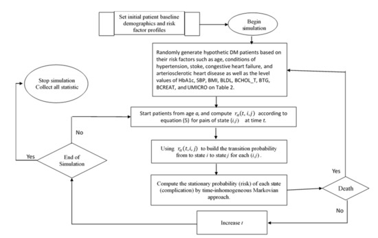 Flowchart of nonhomogeneous Markovian simulation for diabetes mellitus complications.
