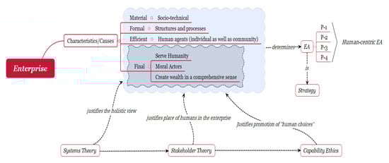 | Proposition-4 | Promoting human capabilities is an ideal EA should promote. | In conclusion, EA should serve the purpose of promoting human capabilities. The very purpose of enterprises is to serve the higher goal of human flourishing. |