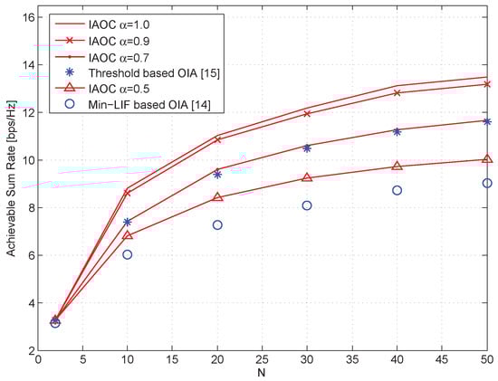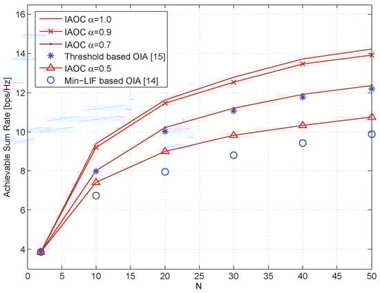 - Hur, S.H.; Jung, B.C.; Rao, B.D. Sum rate enhancement by maximizing SGINR in an opportunistic interference alignment scheme. In Proceedings of the 2011 Conference Record of the Forty Fifth Asilomar Conference on Signals, Systems and Computers (ASILOMAR), Pacific Grove, CA, USA, 6–9 November 2011; pp. 354–358. [Google Scholar]