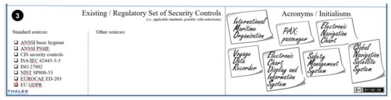 The right part of the third section provides a little space to recall typical acronyms and initialisms used in the domain-under-study. The latter may seem anecdotal, but understanding and sharing the vocabulary of the stakeholders is always a good step towards collaboration and establishing trust with the stakeholders, especially the unaware cybersecurity stakeholders.