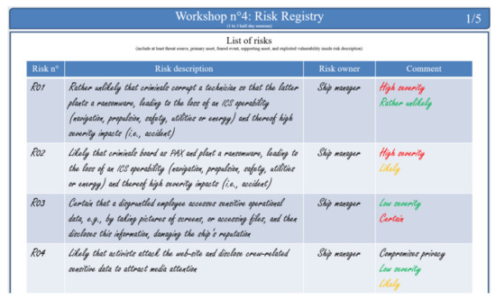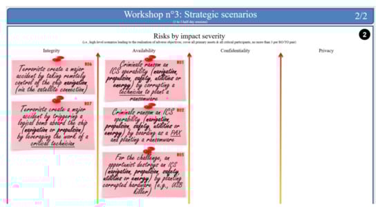 - Annex 3 of FORESIGHT D5.3. Models for Risk Analysis and Assessment (Naval Use-Case). 2021. Available online: https://club-ebios.org/site/wp-content/uploads/productions/ClubEBIOS-Oberisk-Exemple-2021-01-07.pdf (accessed on 9 June 2021).