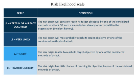 - Agence Nationale de la Sécurité des Systèmes d’Information (ANSSI). EBIOS Risk Manager; ANSSI: Paris, France, 2019; p. 49.