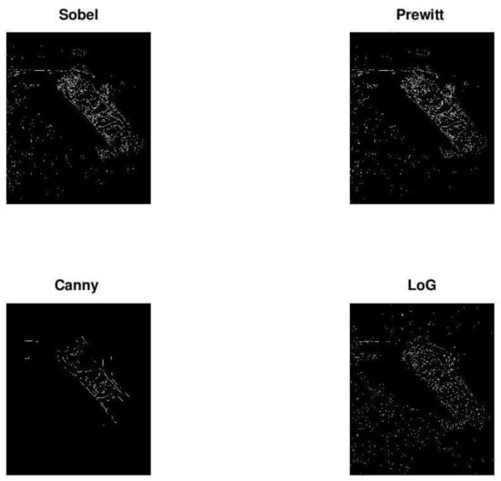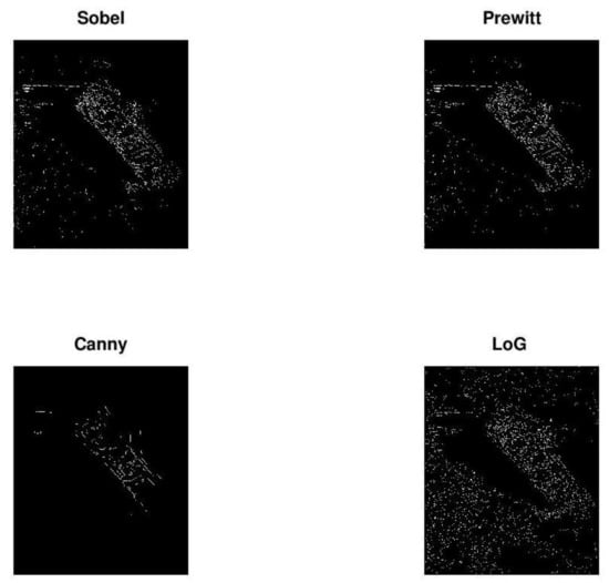 A common method for contour extraction is edge detection [,]. Common edge-detection algorithms have been proposed by Roberts (1965), Prewitt and Mendelsohn (1966), Sobel (1970), and Canny (1986) [], and have been implemented in MATLAB Image Processing Toolbox [], as well as Octave and its image package [].