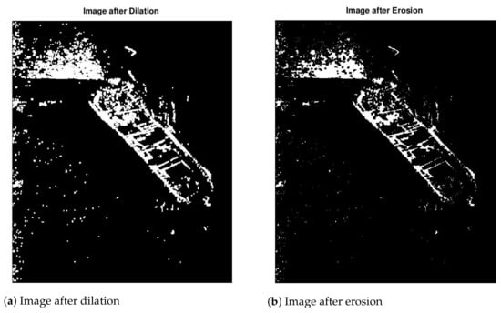 Morphological image processing consists of a set of operators which transform images using mathematical morphology [,,]. The basic morphological operators are erosion, dilation, opening, and closing. The fundamental operations are erosion and dilation; opening is the dilation of the erosion of an image while closing is the erosion of the dilation of that image, also referred to as ‘corrosion expansion’ []. Octave and MATLAB support morphological operations with several functions of their image processing libraries [,].