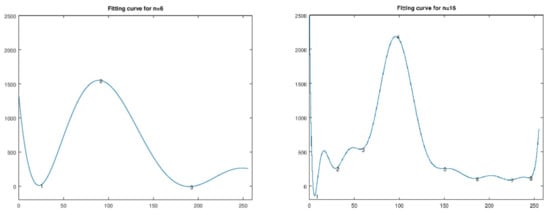Method 1: Left: fitting polynomial of degree n = 6; right, fitting polynomial of degree n = 16 producing multiple valleys.