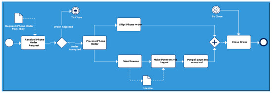 Figure 3 describes an example where an order of an iPhone from eBay (https://creately.com/blog/examples/bpmn-templates-model-processes/, Accessed Date: 8 November 2020) is expressed by a BP.