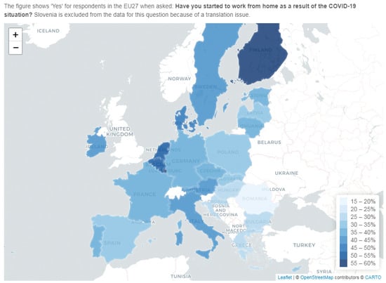 https://ec.europa.eu/eurostat and https://www.eurofound.europa.eu/data/covid-19/working-teleworking (accessed on 10 July 2020).