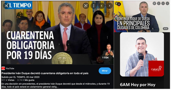 During the SARS-CoV-2 pandemic, Colombians were kept informed through the traditional media news on the Internet; a digital setting where each user spent an average of 79.6 min becoming informed. Video was the resource that captured people’s attention on the Internet (67.1 min per person), while the traditional media that was preferred by the people is the radio to which Colombians dedicated to listening on the Internet, 1,527,690,000 min, just considering the top 10 sites dedicated to providing this service [38]. The informative guide reveals a content production for the consumption of cultural practices, in which the traditional media industry and its presence on digital platforms converge (Table 1) as an effort to reactivate the consumption of informative content that is produced by the traditional company. A change in audience attitudes that transforms as the pandemic progresses, identification of a new user that leads mass media to transform their productive routines and adapt to change to guarantee the continuity of their presence in the Colombian media ecosystem, with the alteration that this implies for their business model.