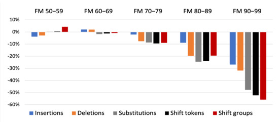 TER computation is based on the identification of different types of token-level edit operations required to bring the MT output in line with a reference translation (i.e., insertions, deletions, substitutions and token or group shifts). By using TER, we aim to find out what types and what amount of edits are required to transform both the NFR and the baseline NMT systems into the reference translation. An additional reason for using TER edits is that the edit types are identified for each token separately, which makes it possible to analyse whether the edits affect different classes of words. This is important, considering that content words, which possess semantic content and contribute significantly to the meaning of the sentence in which they occur, arguably matter more than function words when it comes to translation quality, considering that they have been associated with increased post-editing effort [82,83]. In the context of automatic evaluation, attaching more weight to content than to function words has been shown to lead to higher correlations with human quality judgements [84].