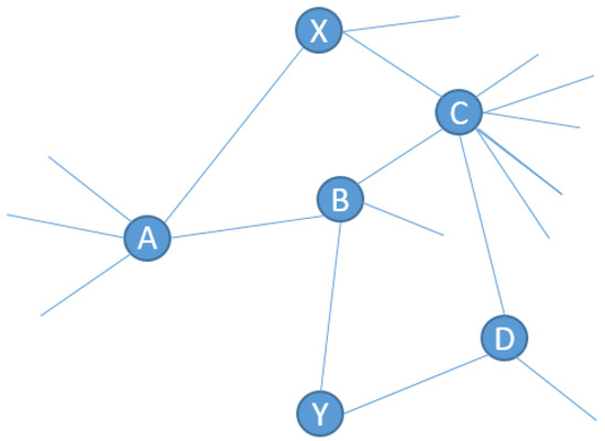 The neighborhood-based metrics presented in Table 1 rely on simple assumptions; for instance, the authors in [20] assumed that the more two nodes have common friends, the higher the probability is that they will be connected in the future. The authors in [19] assumed that the more both nodes have friends, the higher the probability that they will be connected. This assumption follows the principle “The rich get richer” from the field of economics. In conclusion, we can notice that each author has a different point of view with respect to this problem, but the end point is to provide a metric that performs well in term of AUC. The motivation of this work was to propose a new approach that enables researchers to power up the AUC of the metrics. We propose a parameterized expression based on the mean received resources MRR and a local metric. Note that we can apply the proposed enhancement to all the existing local metrics by adjusting the combination parameter for any type of dataset.