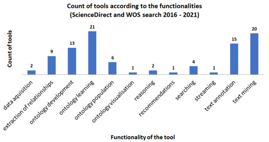 Count of tools according to their functionalities—ScienceDirect and WOS search (2016–2021).